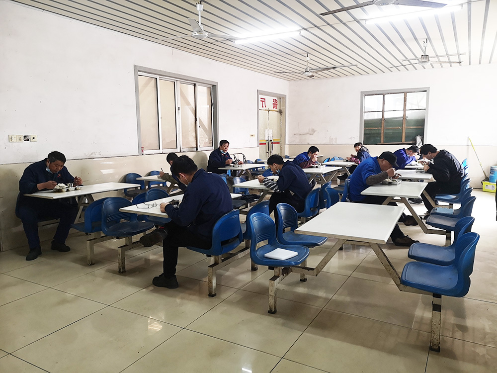 食堂采用分批分餐制,全新的餐具分別激光打上編號(hào),一人一號(hào),報(bào)號(hào)取餐,餐具集中消毒清洗,讓全體員工安心復(fù)工,放心用餐。