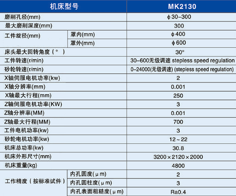 ●本機床為二軸(X軸、Z軸)數(shù)控內(nèi)圓磨床,主要用于磨削工件的內(nèi)圓孔、臺階孔、內(nèi)端面、外端面。磨削循環(huán)均自動完成(具有自動進刀、退刀、粗磨、精磨;自動修正砂輪、自動補償?shù)裙δ?。