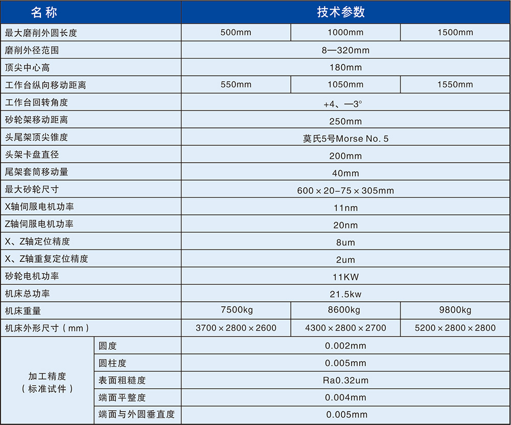 MK1632型數(shù)控外圓磨床主要技術(shù)參數(shù)表