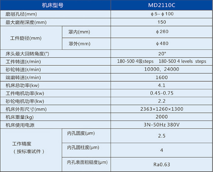● 機(jī)床砂輪軸最高轉(zhuǎn)速為24000轉(zhuǎn)/分,以提高磨削小孔。用戶特殊訂貨??筛难b電主軸變頻調(diào)速以磨削小直徑內(nèi)孔。